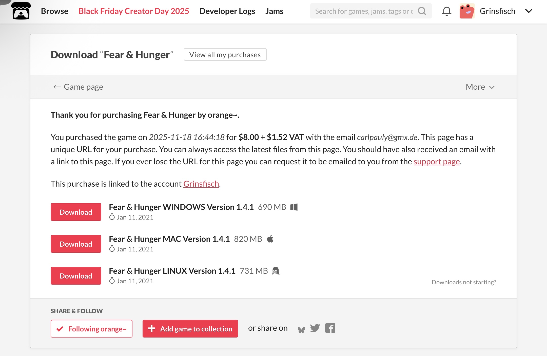 I am also German. I’m sorry for bothering you but could you please send me the steam keys for both fear and hunger games.